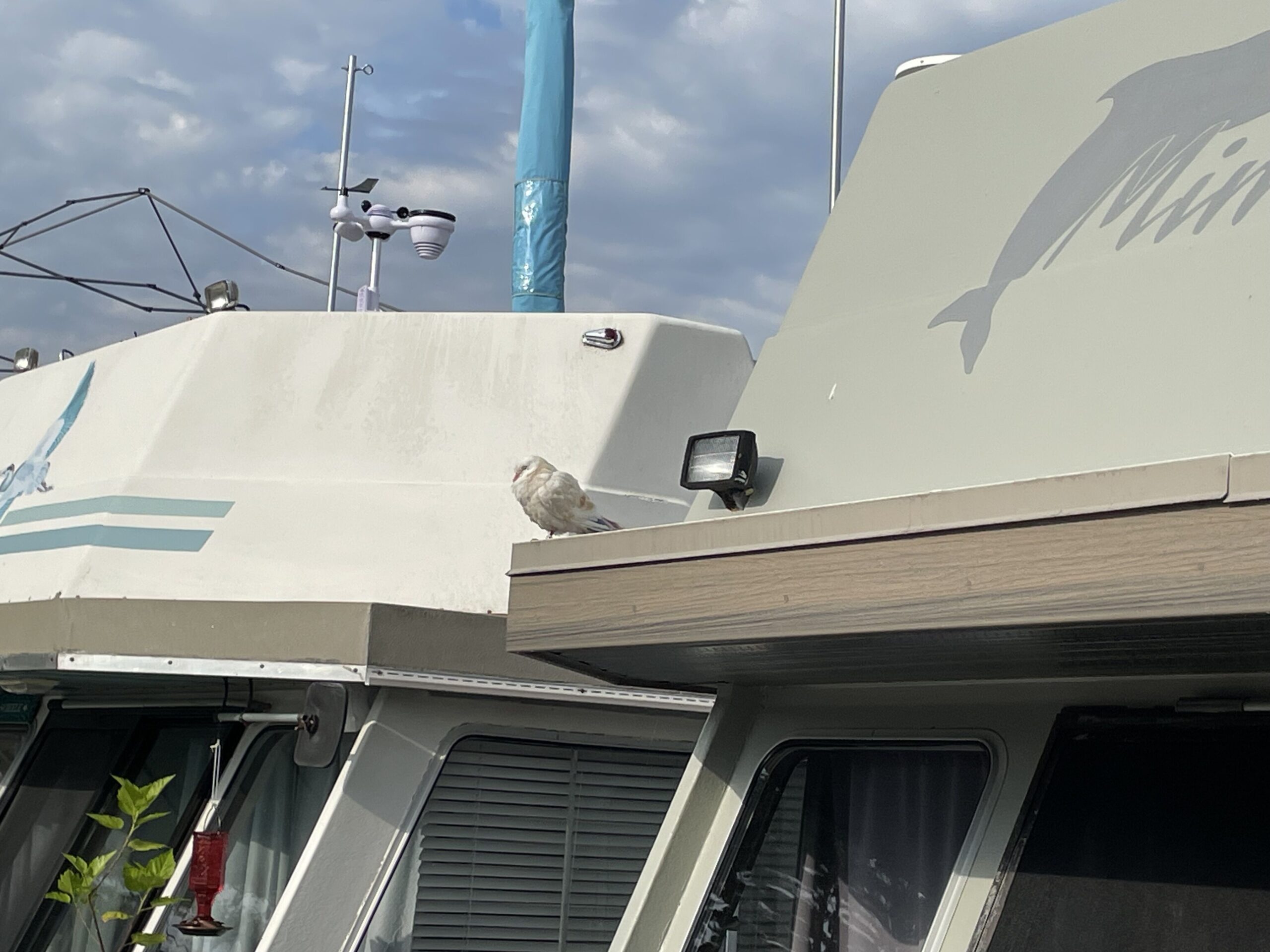 “(The bird) picked up with one of the ladies on the boats, right beside us and it literally sits on her screen door waiting for her to come and give it more water or food or whatever a bird wants,” bemused Scheele.